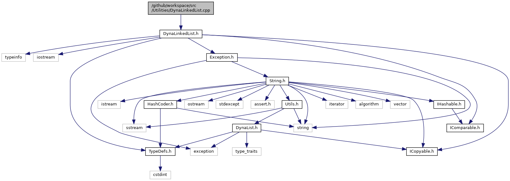 Include dependency graph for DynaLinkedList.cpp:
