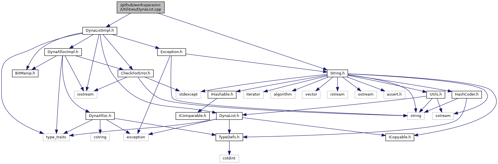Include dependency graph for DynaList.cpp: